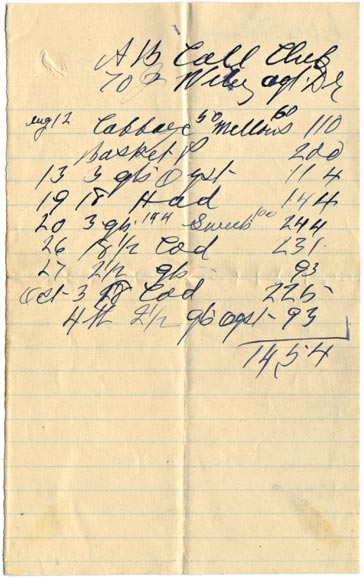 An undated receipt for a variety of goods, including cod, cabbage, and "mellons."