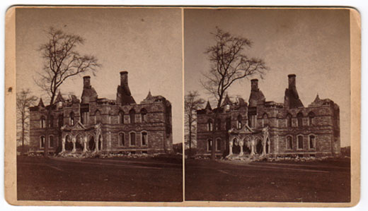 Walker Hall was gutted by a fire in 1870, when this stereoview was photographed.