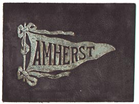 This rectangular leather is embossed with a slightly different silver pennant, with ribbons.