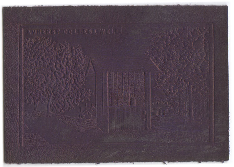 This leather features an embossed image of the College Well, difficult to see even in good light.